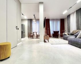 Почти 60 м² с огромной кухней-гостиной, в которой можно устроить званый ужин, не мешая тем, кто уже отдыхает в спальне. Два санузла — чтобы у каждого было личное пространство. Ничего лишнего, всё на своих местах, ремонт выполнен с уважением к деталям и ощущению дома.