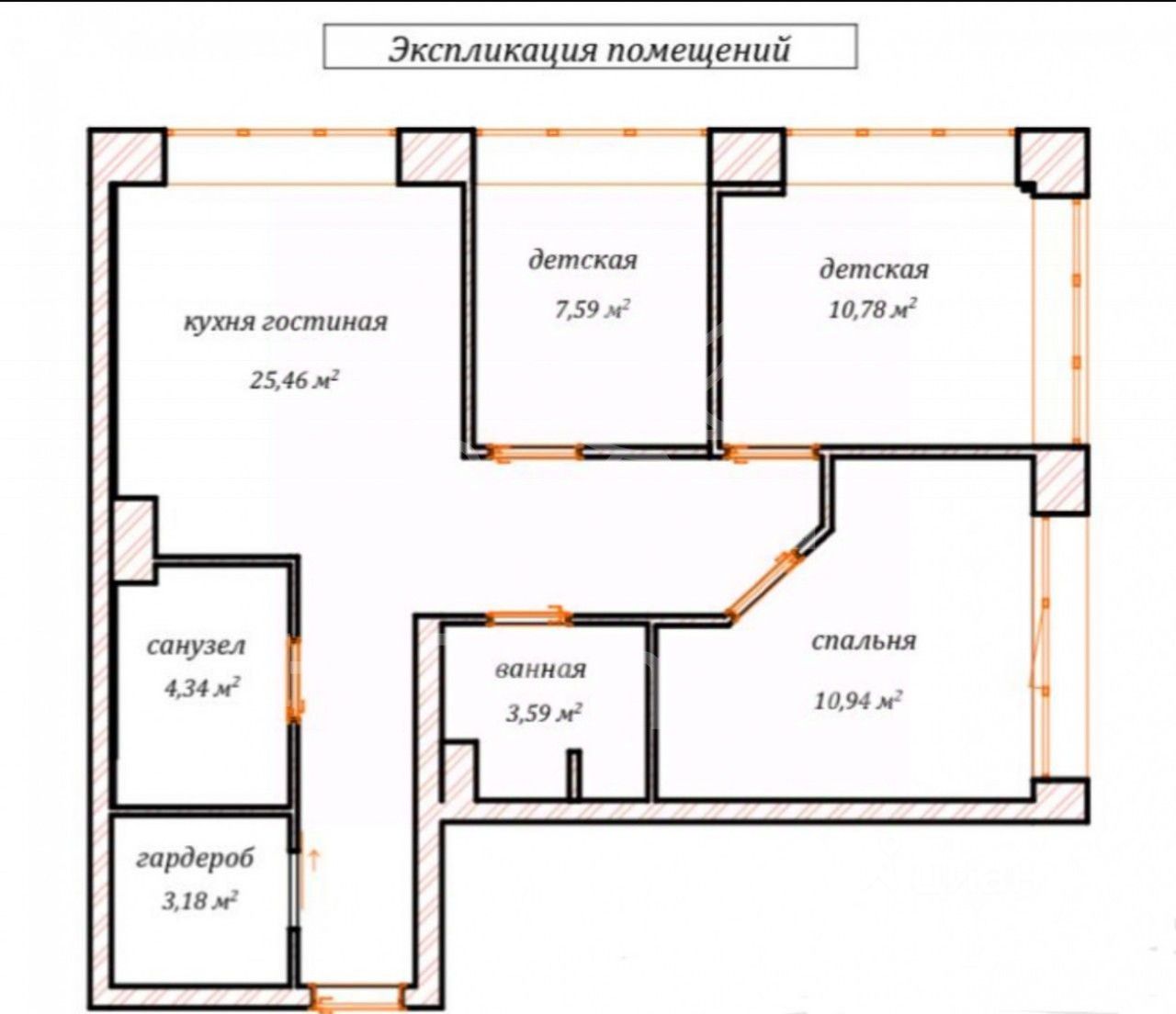 Три полностью изолированные комнаты, изолированная гардеробная (постирочная) и просторная кухня-гостиная.