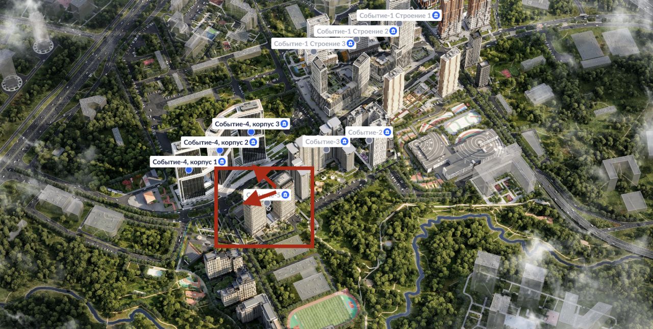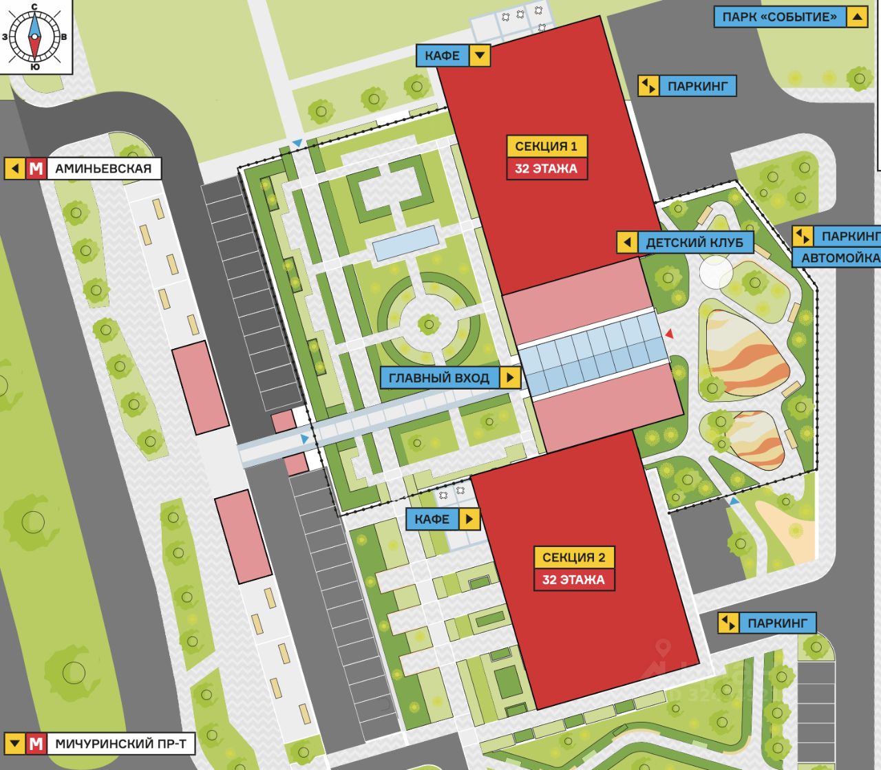 ИНФРАСТРУКТУРА: Жилой комплекс расположен в престижной локации Юго-запада, вокруг парков и скверов: Эко-Парк Событие и Парк Долины реки Сетунь.