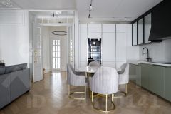 Замена радиаторов отопления на встроенные напольные с электронными терморегуляторами. Выполнена шумоизоляция пола, потолка, граничащих стен. Паркетная доска Coswik, краска Little Green, сантехника GROHE. Санузлы и прихожая в керамограните Италия- Atlas Concorde. На кухне измельчитель отходов, раковина Omoikiri. Столешница и фартук из кварца. В квартире выполнена гипсовая лепнина по индивидуальному эскизу. Система освещения Центр Свет, в гостиной люстра ручной работы, а также итальянские светильники . В квартире теплый пол в санузлах, в прихожей. Декоративные панели из массива дерева , полки с отделкой из мрамора. Межкомнатные двери из массива Union. . Электрика Schneider.