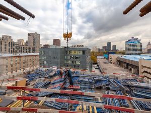 В основе проекта благоустройства, разработанного бюро Gafa, была идея создания приватной гостиной, в которой найдется занятие для жителей разного возраста. Закрытый двор Дом Дау разместится на кровле стилобатной части и будет очерчен трехметровым стеклянным ограждением. Внутри появятся: