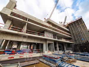 ЖК Дом Дау представляет собой композицию из 3-х частей: 3-х этажная общественная часть и многоэтажная высотная жилая башня, размещенные на общей подземной 4-этажной части. В проекте предусмотрена эксплуатируемая кровля стилобатной части, доступная для жителей там появятся парк, зона для занятий спортом, детская площадка и иные малые архитектурные формы, защищенные 3-метровым стеклянным ограждением.
