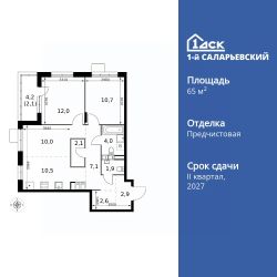 Продаётся 3-к квартира номер 215 общей площадью 65.9 кв.м. на 21-м этаже 25 этажного здания. Отделка Whitebox. Цена с учётом скидки.