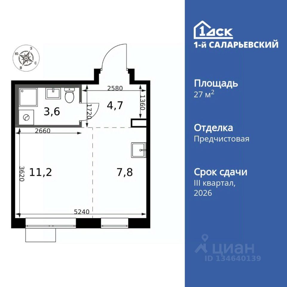 Продаётся квартира-студия номер 523 общей площадью 27.3 кв.м. на 20-м этаже 24 этажного здания. Отделка Whitebox. Цена с учётом скидки.