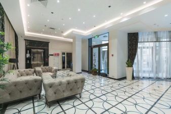 Апартаменты расположены в элитном ЖК Сады Пекина в центре Москвы, в пешей доступности от Тверской улицы и Патриарших прудов. Комплекс находится в тихой части города, защищенный от шума гостиницей Пекин.
