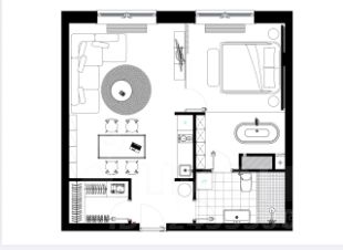 Планировка: Просторная кухня-гостиная, изолированная мастер-спальня с гардеробной, санузел, холл со встроенными системами хранения.