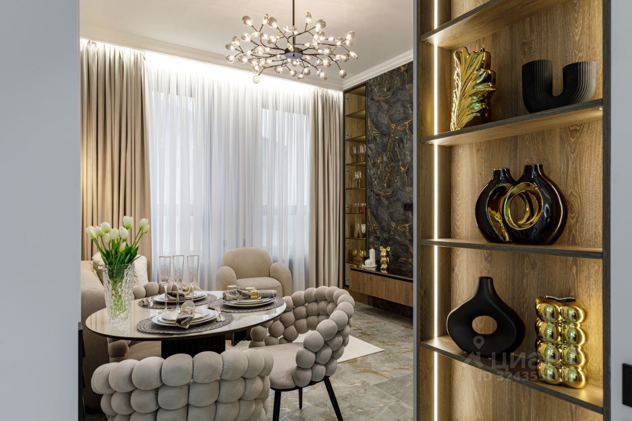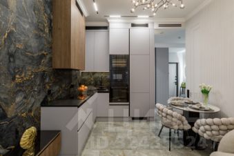 Квартира полностью укомплектована мебелью и встроенной бытовой техникой BOSCH: холодильник, посудомоечная машина, духовой шкаф и СВЧ, винный шкаф, варочная панель, вытяжка, установлен измельчитель и фильтры для питьевой воды, а также с любовью и с заботой к будущему собственнику подобран текстиль и предметы декора!