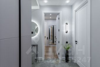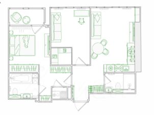 Функциональная планировка: кухня-гостиная 18 кв.м., мастер-спальня отдельным блоком включая спальню 15 кв.м. с выходом на теплый балкон, ванную комнату с ванной, постирочную, зону бьюти, а также два встроенных вместительных шкафа; комната свободного назначения 14 кв.м. (детская, гостевая или кабинет) с гардеробной, два полноценных сан/узла: один с ванной, второй - с душевой нишей, большое количество встроенных шкафов.