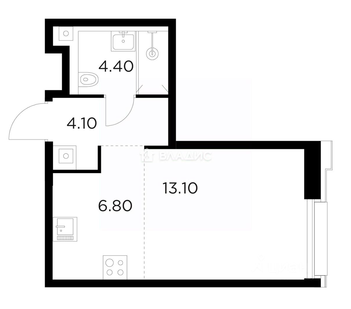 - Площадь 28,4 кв.м