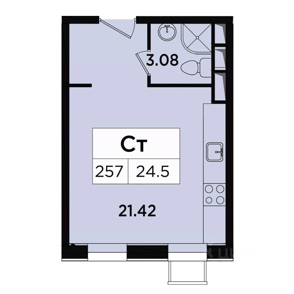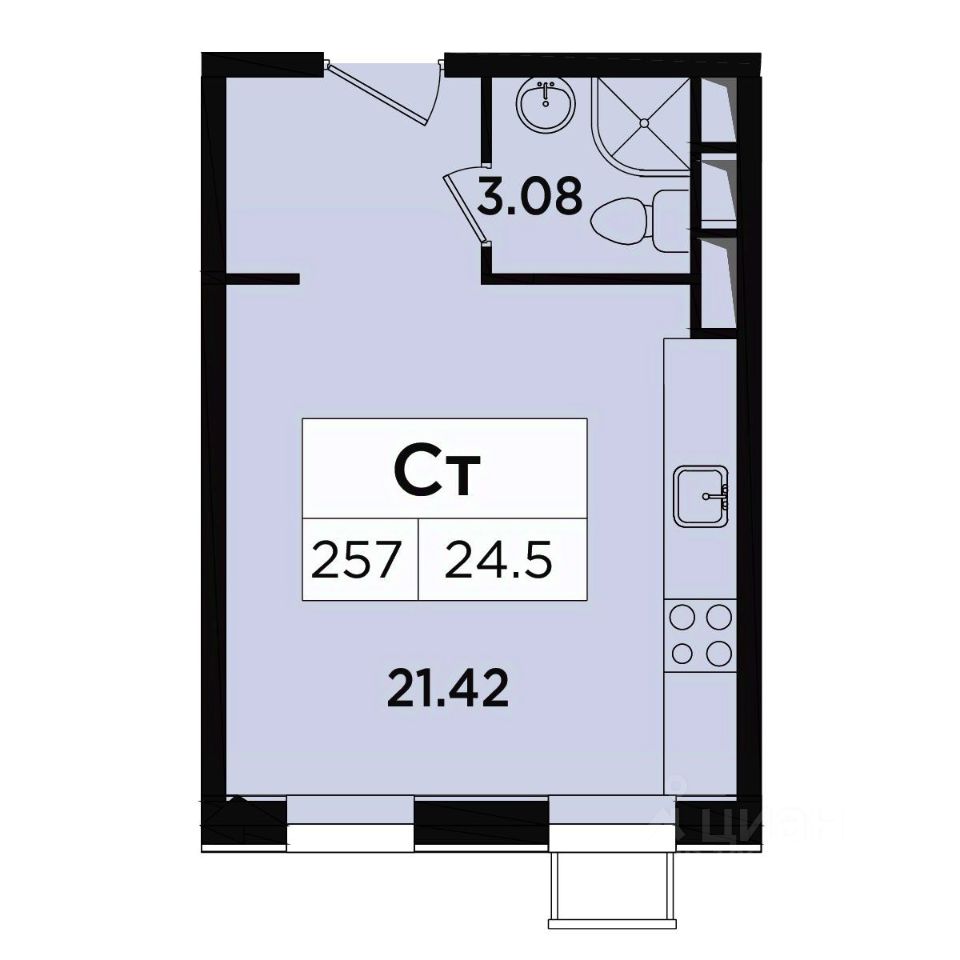 Уютная студия 24,5 м2 без отделки. В студии много света и отличные виды.