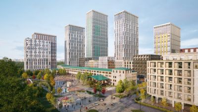 Охраняемая территория с ландшафтным дизайном.