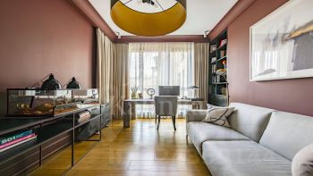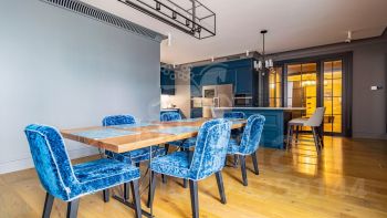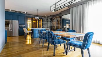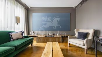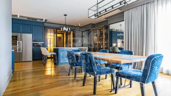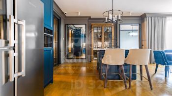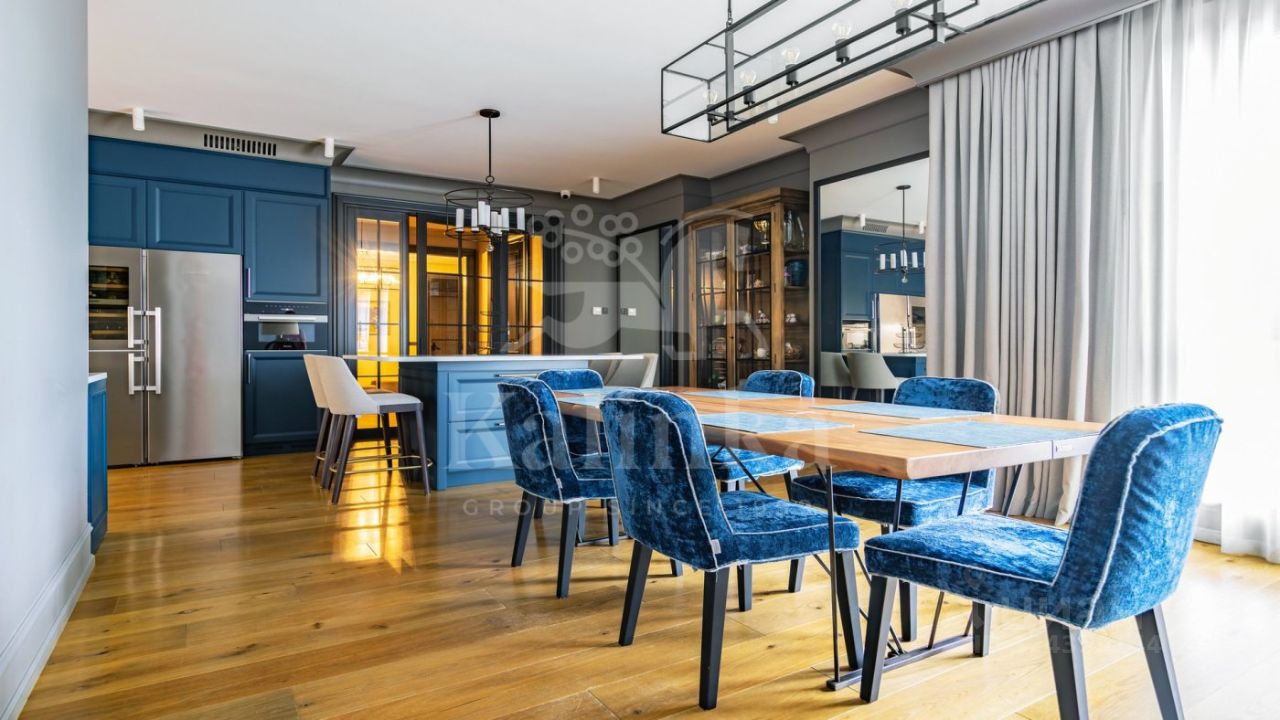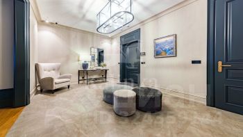 Квартира площадью 249 м² на 4-м этаже ЖК Barrin House выполнена в концепции "ready-to-move in" с высококачественной дизайнерской отделкой: потолки высотой 3,2 м, премиум-материалы, сантехника ведущих европейских брендов. Просторная прихожая 15 м² с консолью плавно переходит в холл (8 м²), откуда открывается вид на объединённую кухню-столовую-гостиную площадью 62 м² с островом из кварцевого агломерата, техникой Gaggenau, зоной столовой на 810 персон и уютным уголком с кинозалом. Рядом расположены постирочная 6 м² с премиальной бытовой техникой и гостевой санузел (3,2 м²). Родительский блок включает кабинет площадью 16 м² с видом во двор, мастер-спальню (20,9 м²) с французскими окнами, просторную гардеробную 12 м² и ванную комнату 12 м² с отдельной душевой кабиной. Детская зона представлена двумя спальнями 15 м² и 20 м², каждая с собственной гардеробной и санузлом с качественной плиткой и подвесной сантехникой. Эта квартира сочетает продуманное зонирование, абсолютную приватность и отделку премиум-класса — идеальное семейное пространство в центре Москвы.