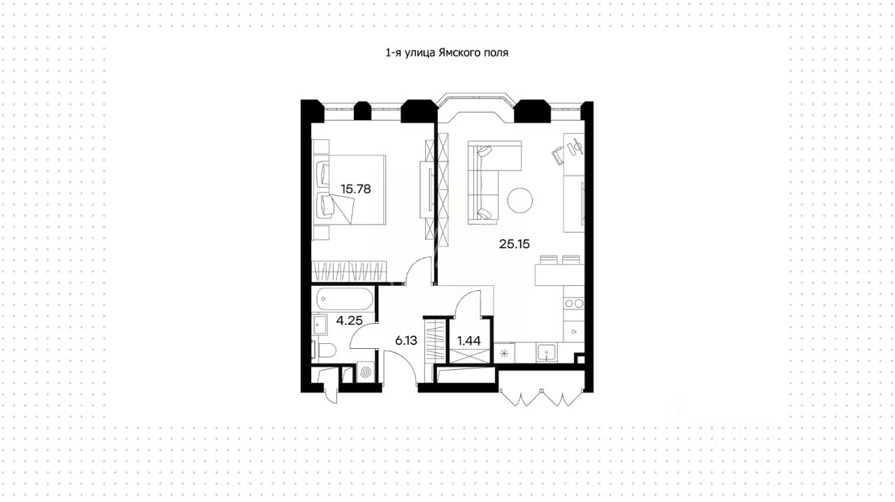 Апартаменты с 1 спальней общей площадью 53 м² в комплексе премиум-класса Glorax Belorusskaya в районе Ленинградского проспекта. Апартаменты без отделки расположены на 3 этаже в секции 1. Возможно спланировать кухню-гостиную, спальню, ванную комнату, гардеробную и прихожую. Из окон открываются виды на 1-ю улицу Ямского поля.