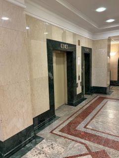 В доме представительная входная группа - отделана мрамором, 3 пассажирских и 1 грузовых лифты KONE.