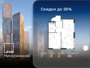 В жилом квартале, расположенном на границе с природным заказником "Долина реки Очаковки", продаётся 2-комнатная квартира площадью 46.00 кв.м без отделки. Квартира расположена на 3 этаже 24-этажного корпуса 7 в жилом комплексе бизнес-класса Level Мичуринский (компания Level Group/Левел групп).