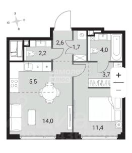 *1-х ком.квартира 45.1м2