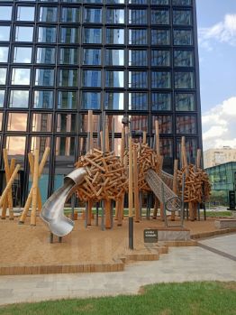 Четыре скоростных лифта с вызовом по пропуску на свой этаж. Дизайнерское лобби с колясочной, лапомойкой, зоной ожидания. Приватный двор с детской площадкой, секретным садом. Доступ по пропускам только для резидентов, охрана, гранд-лобби для гостей, круглосуточная служба сервиса. Подземный паркинг.