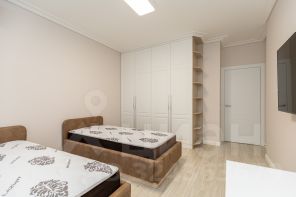 Кухня полностью укомплектована всей необходимой качественной встроенной техникой. Установлен водонагреватель для бесперебойного горячего водоснабжения. Два санузла. В просторной ванной комнате — большая удобная ванна. Продумана система хранения: гардеродные и многочисленные шкафы.