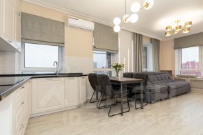 Повсюду продуманная подсветка (основная и декоративная), создающая уютную атмосферу в любое время суток. Потолки 3 метра создают ощущение простора и воздушности. Для вашего уюта и тишины уложен немецкий ламинат с подложкой из пробкового дерева, которая обеспечивает отличную шумоизоляцию и дополнительное тепло.