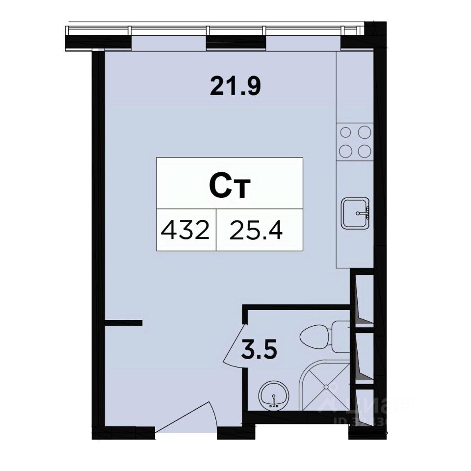 Площадь - 25,4 м2.