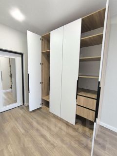 Встроенные шкафы в прихожей и комнате. Кровать в спальне.