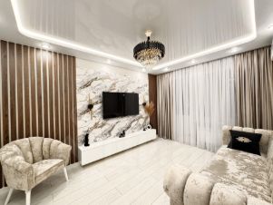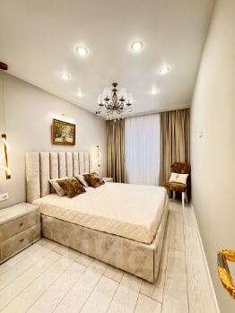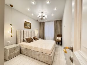 В квартире выполнен полный капитальный ремонт по дизайн-проекту с заменой всех коммуникаций, радиаторов, проводки, сантехники, труб (Rehau), проведены тёплые полы. Использовали только дорогостоящие материалы. Много мест хранения, вся мебель и бытовая техника в квартире новая, без эксплуатации и входит в стоимость квартиры. Комнаты изолированные. С лоджии открывается вид на зелёный двор и детскую площадку. Подъезд чистый, ухоженный, без посторонних запахов. Автомобильная парковка находится внутри дома. Три шлагбаума. Въезд осуществляется через автоматический шлагбаум.