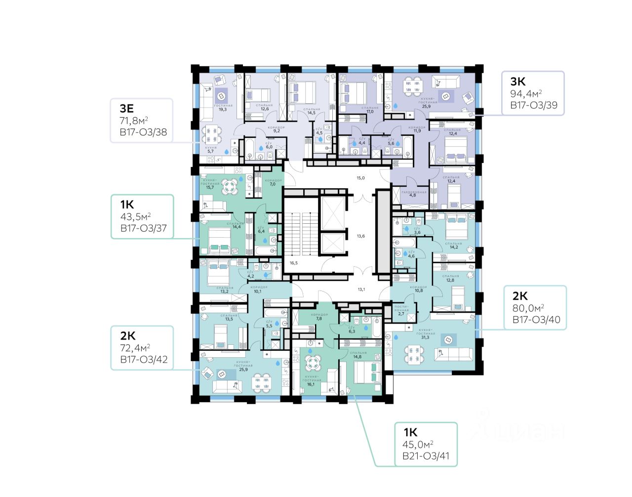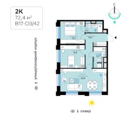 В продаже — двухкомнатная квартира с чистовой отделкой, общей площадью 72,4 кв. м. Квартира расположена на седьмом этаже десятиэтажного дома класса Оптимум в квартале В17 нового района СберСити, который строит Сбер. Всего в доме — 54 квартиры.