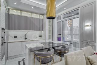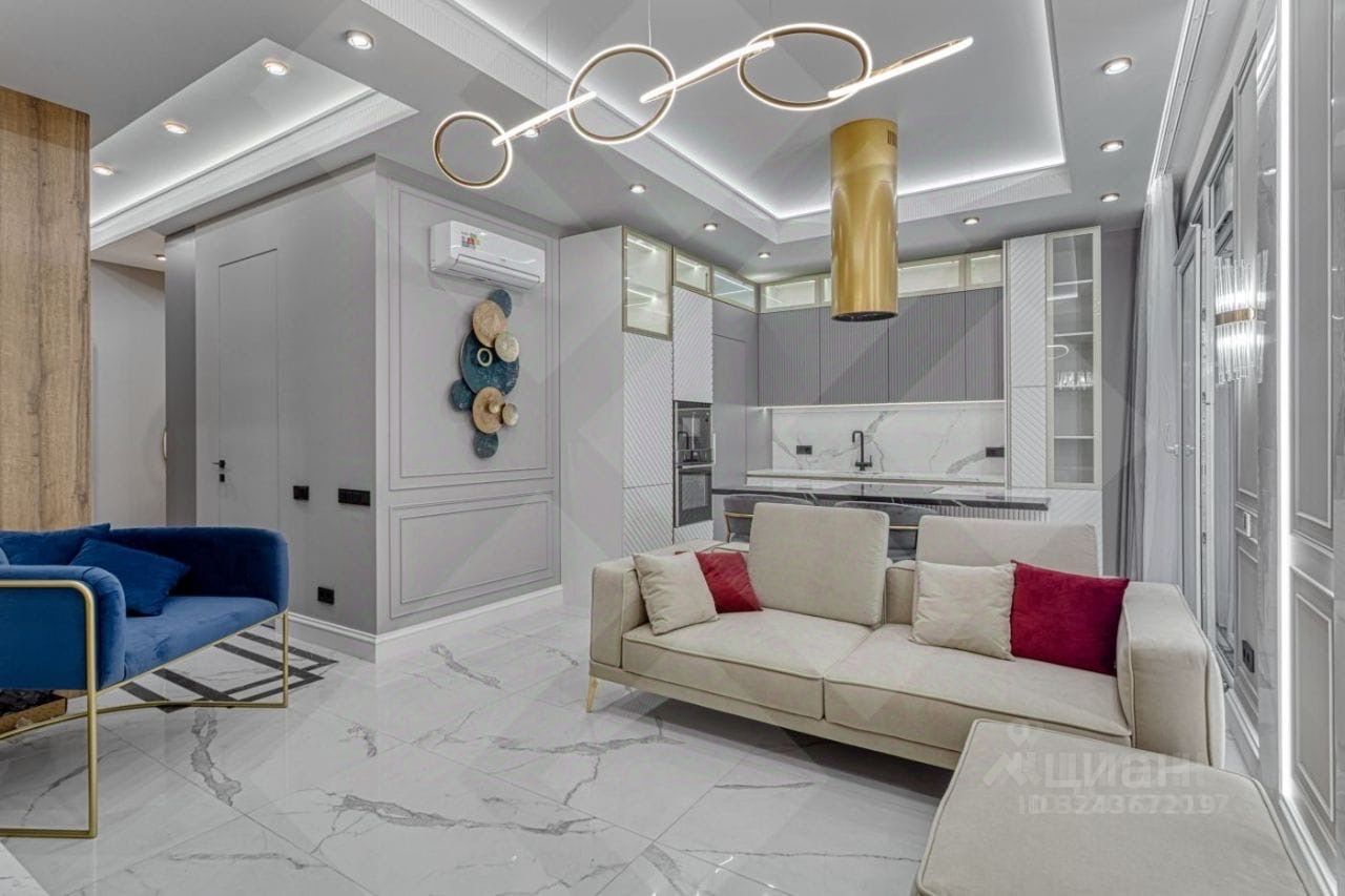 Внутри выполнен стильный дизайнерский ремонт с использованием качественных материалов. Квартира полностью укомплектована мебелью и современной техникой, что позволяет сразу заехать и жить с комфортом. Планировка очень удобная: три изолированные комнаты и два отдельных санузла, что идеально подходит для семьи.
