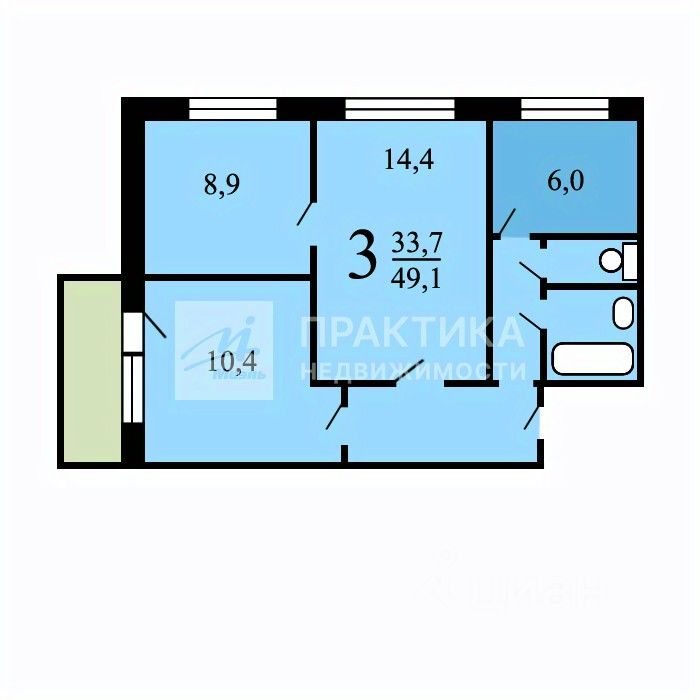 ПЛАНИРОВКА квартиры: комнаты 14.4, 10.4, 8.9 м2.