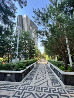 Во дворе: парк с закрытой территорией без машин с множеством прогулочных аллей и детских площадок! Есть поле для футбола, волейбола, большого тенниса, а также спортивная площадка с тренажерами под навесом для круглогодичного занятия спортом.