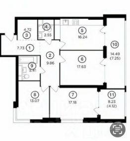 Квартира общей площадью 117,11 кв. м. с двумя лоджиями.