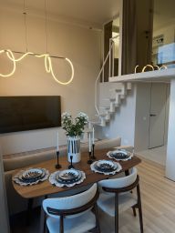 - дополнительный комфорт: бойлер на случай отключения горячей воды, при этом центральное водоснабжение работает круглый год, большой стол 180 см в рабочей зоне, кровать 180х200 см