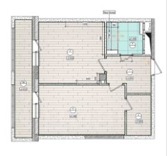 - Пол в комнате и кухне ламинат, на балконе и в санузле керамогранит с теплым полом,