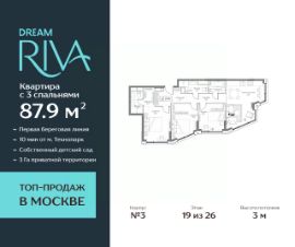 Продаётся Квартира с 3 спальнями квартира на 19 этаже 26-этажного дома (3 корпус).
