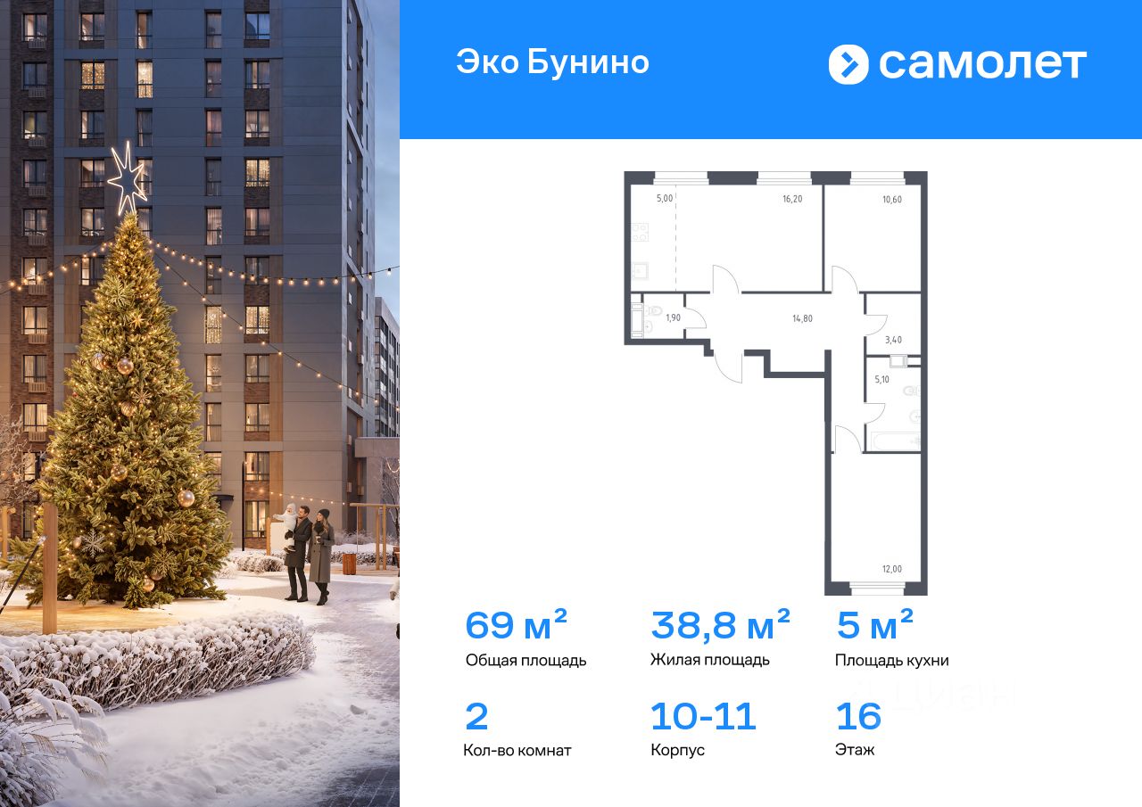 Строим кварталы для жизни с заботой о будущем. Предлагается 2-комнатная квартира комфорт-класса 69 кв.м в корпусе 10-11 на 16 этаже, в ЖК "Эко Бунино"