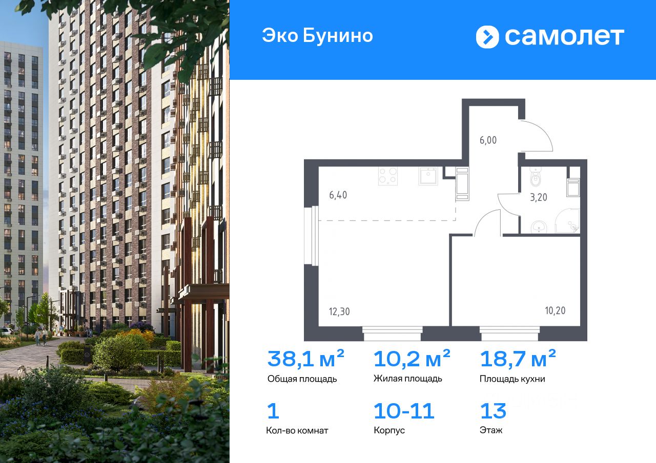 Строим кварталы для жизни с заботой о будущем. Предлагается 1-комнатная квартира комфорт-класса 38,1 кв.м в корпусе 10-11 на 13 этаже, в ЖК "Эко Бунино"