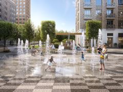 - Европейский подход к благоустройству от бюро Wowhaus: появится парадный бульвар, аллея с фонтаном и арт-объектом, что дополнит уже сформированное благоустройство: детские площадки для разных возрастов, площадки для воркаута, дорожки для бега и пеших прогулок, места для отдыха
