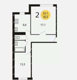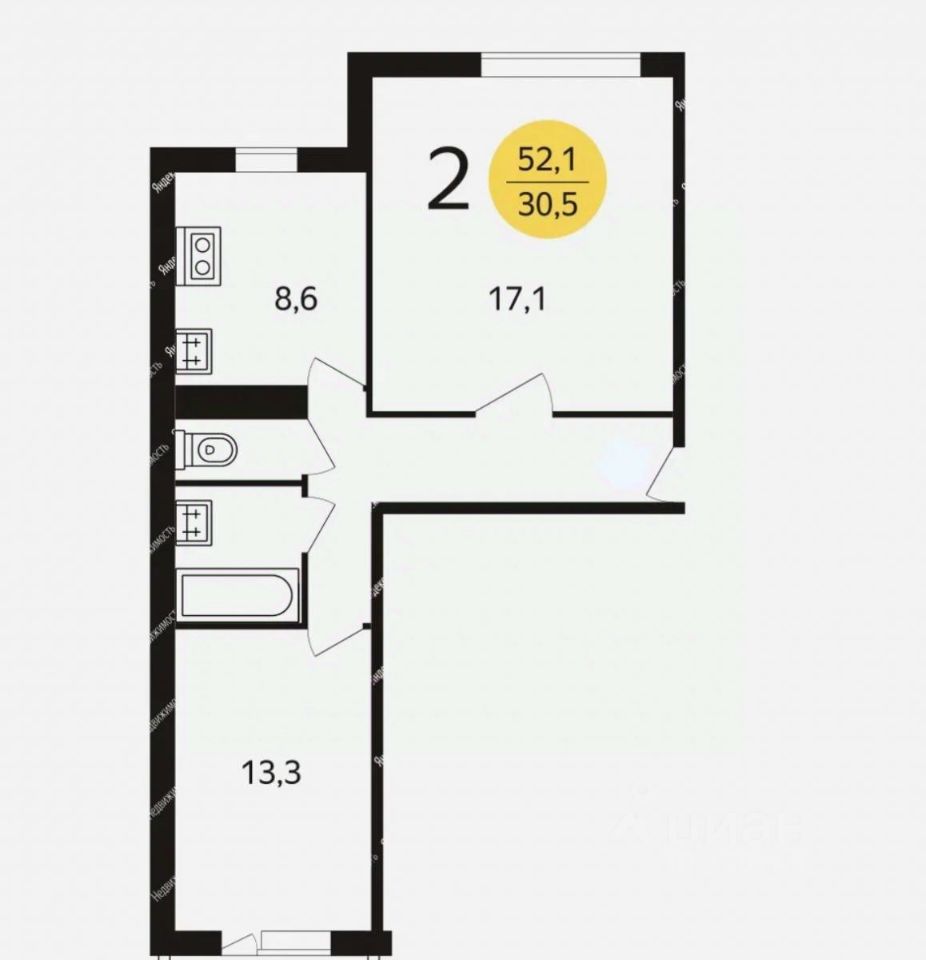 Просторная квартира с эргономичной планировкой и большой кухней. Общая площадь 52 м2. Светлая просторная кухня 9 кв. м. Просторный широкий коридор.
