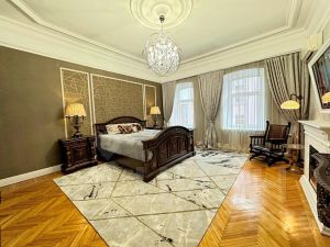 Выполнен дизайнерский ремонт в 2025 г., в колониальном стиле, с сохранением исторических оригинальных элементов квартиры ( антикварный паркет, оригинальные деревянные межкомнатные двери, оригинальная лепнина) . Дорогая американская и европейская мебель, антикварные предметы интерьера, квартира полностью укомплектована техникой. Спланирована гостиная с обеденной зоной с 2-мя холодильниками и большой посудомоечной машиной, раковина с измельчителем отходов и отдельным краном с фильтрованной водой. Просторная очень красивая ванная комната, унитаз со встроенным биде, стиральная и сушильная машины установлены в специальную нишу, пол с подогревом. Высокоскоростной интернет, телевизоры во всех помещениях, кондиционеры.