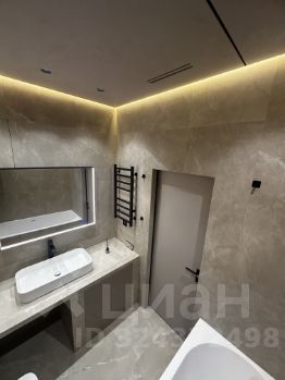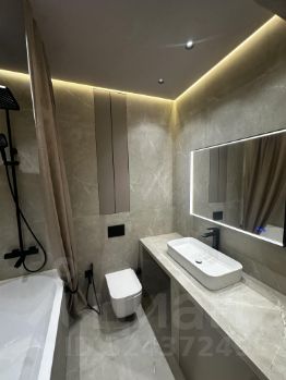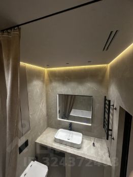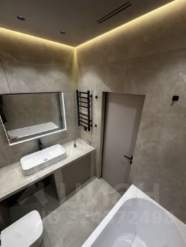 Инсталляция TECE, сантехника Raglo, итальянская ванна Salini. Гигиенический душ, розетка под умный унитаз. Встроенная стиральная машина. Тёплый пол, зеркало с подогревом и регулировкой света. Кафель Vitrum taupe, керамогранит Лапаррат. Скрытый монтаж карниза.