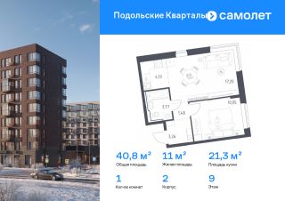 Строим кварталы для жизни с заботой о будущем. Предлагается 1-комнатная квартира комфорт-класса 40,79 кв.м в корпусе 2 на 9 этаже, в ЖК "Подольские Кварталы"