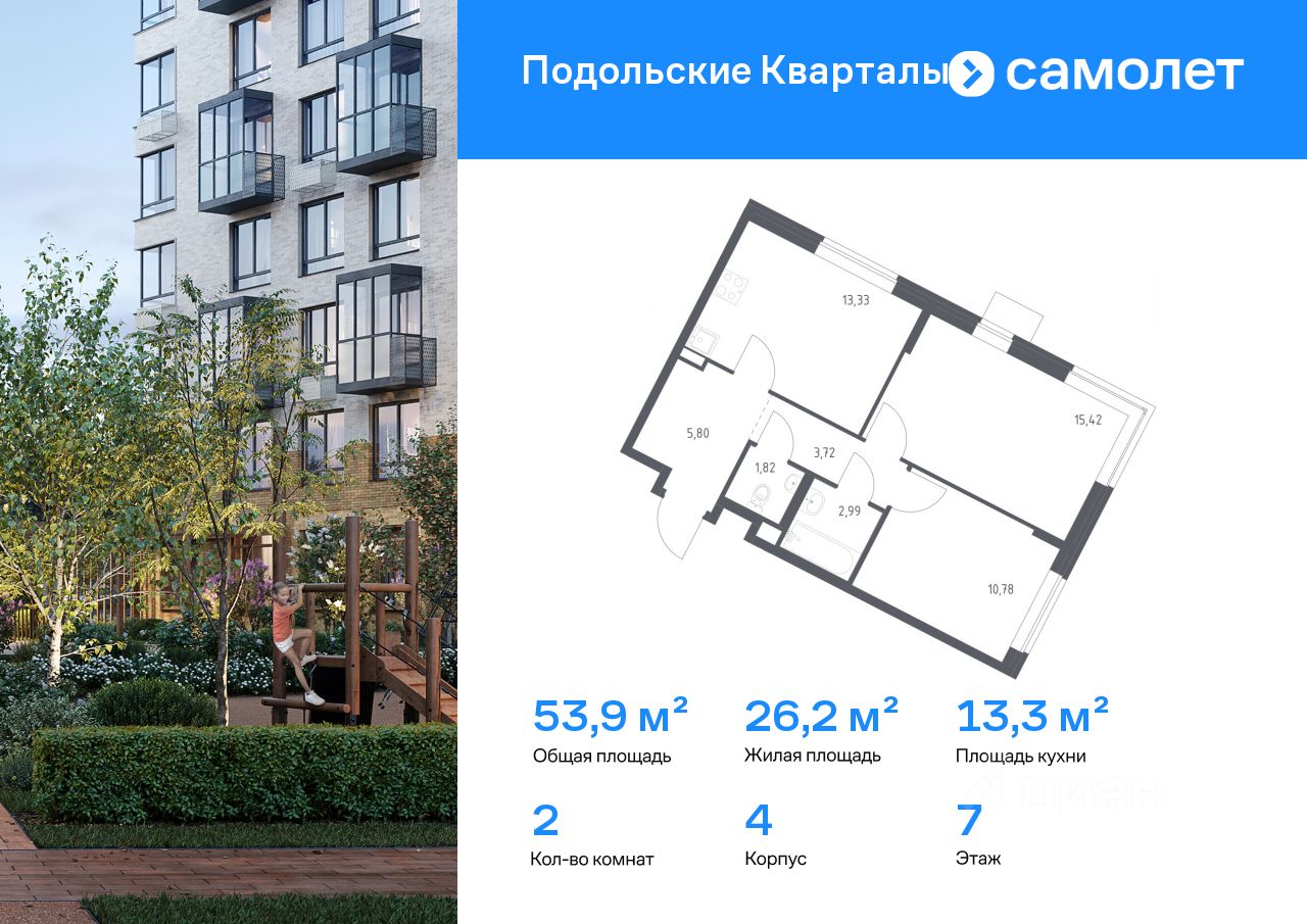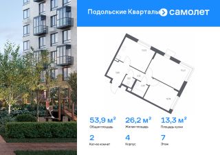 Строим кварталы для жизни с заботой о будущем. Предлагается 2-комнатная квартира комфорт-класса 53,86 кв.м в корпусе 4 на 7 этаже, в ЖК "Подольские Кварталы"