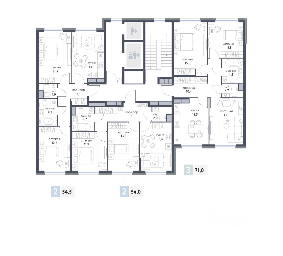 Продаётся просторная 3-комнатная квартира общей площадью 70.5 м² на 2 этаже в новом жилом комплексе "Сиреневый парк", расположенном в Восточном административном округе Москвы на улице Тагильская. Всего 10 минут ходьбы от станции метро "Бульвар Рокоссовского" и одноимённой платформы МЦК.