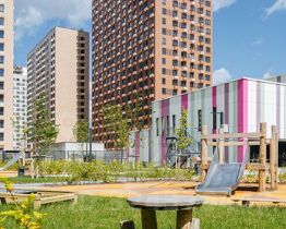В проекте жилые дома, 2 детских сада на 150 и 235 мест, школа на 1100 мест и подземные паркинги на 525 машиномест. В зелёных дворах-парках будут места для отдыха, современные детские и спортивные площадки. На первых этажах откроются магазины, кафе и другие сервисы — за кофе и свежим хлебом к завтраку можно будет просто спуститься на лифте.