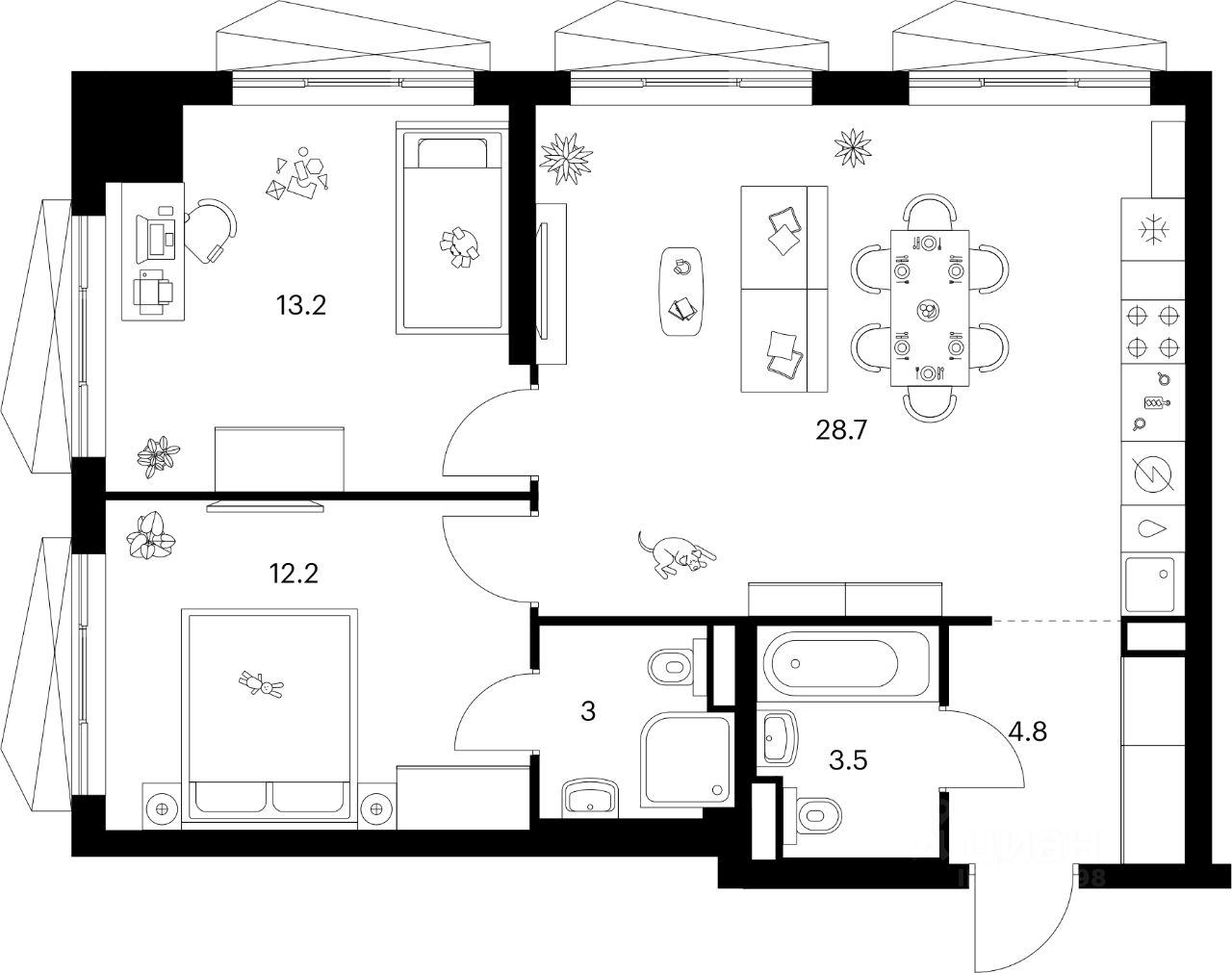 Новостройка! Продается 2-комн. кв-ра площадью 65,4 кв.м, (Корпус 1.3, Секция 3) 33 этаж 38-этажного дома в Нарвин от ПИК. Новый проект ПИК Серии плюс "Нарвин" возводится в Головинском районе Москвы.