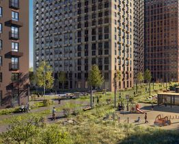 Проект задуман небольшим и уютным - в нём будет всего 4 корпуса с переменной высотой: 28, 33 и 38 этажей с подземным паркингом. Не территории мы построим детский сад на 150 малышей и школу для 350 учеников. А во дворе - зелёный парк с детскими и спортивными площадками и зонами для отдыха. На первых этажах откроются магазины, кафе и другие сервисы.