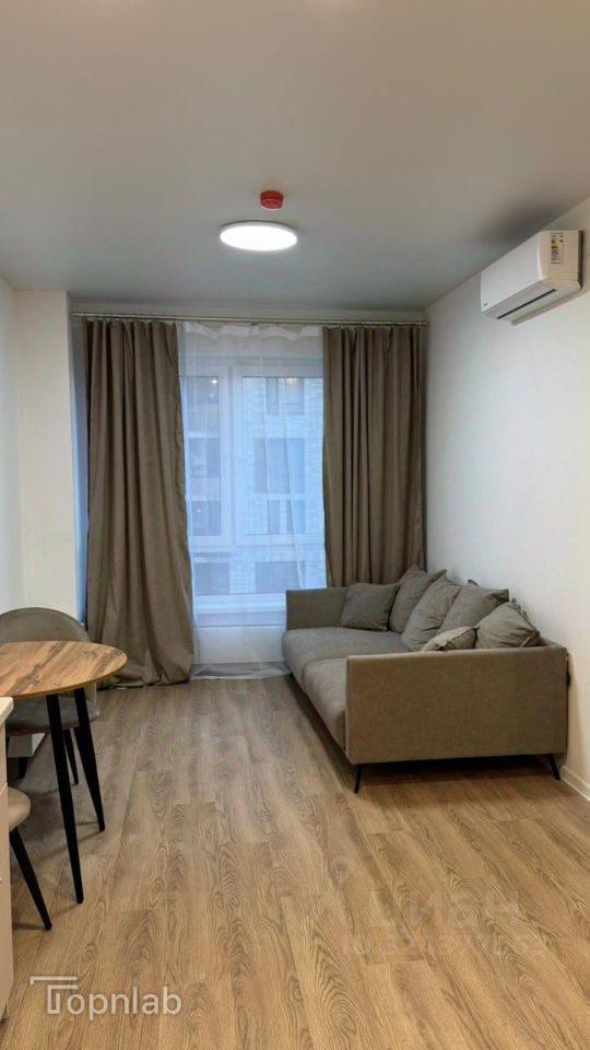 В гoстинoй обeдeннaя зона, дивaн, тумбa и телeвизoр. Есть кондиционеp.