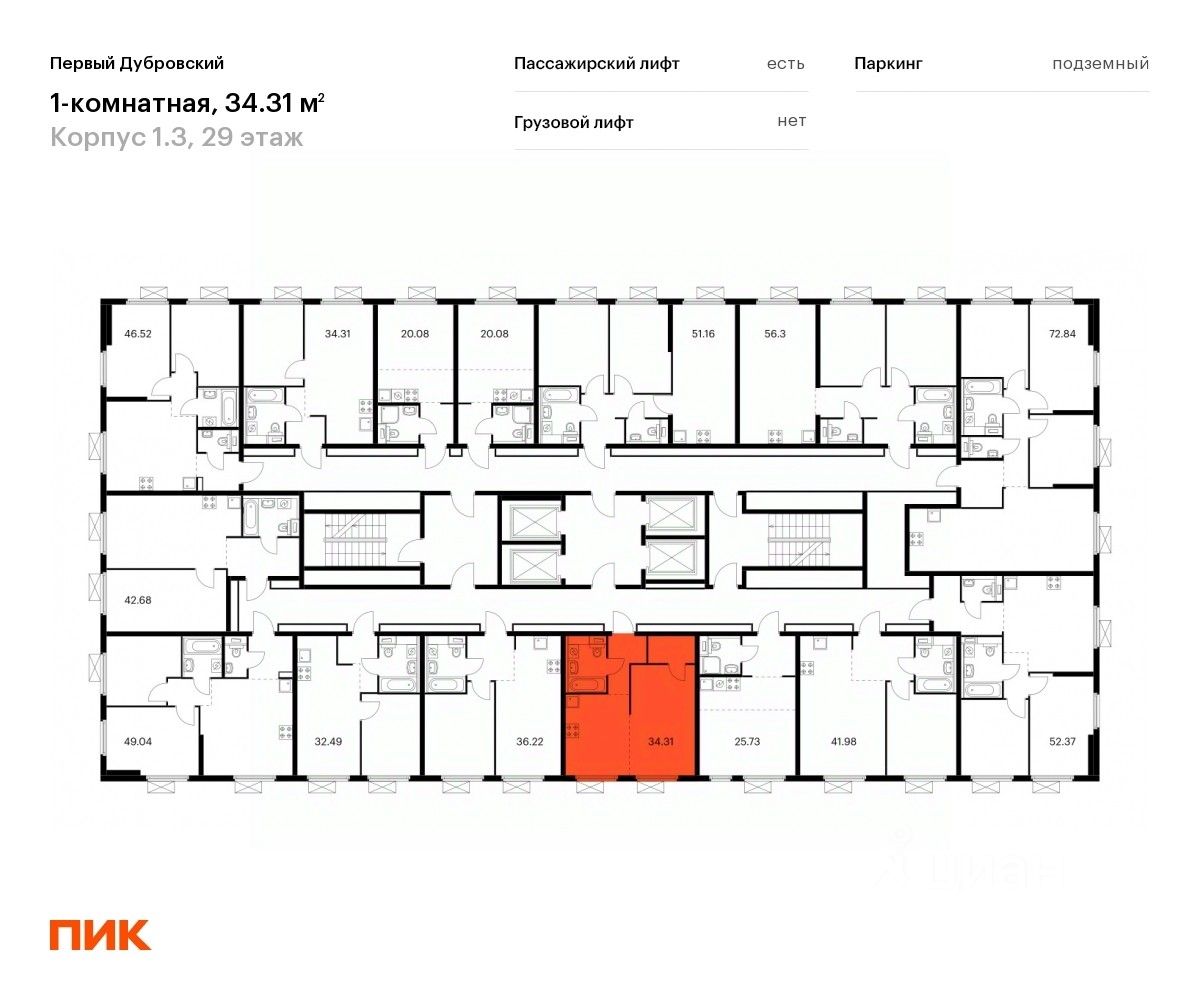 Продаётся 1-комн. квартира площадью 34,31 кв.м на 29 этаже 33 этажного дома (Корпус 1.3, Секция 1) проекта ПИК Первый Дубровский. Светлый просторный подъезд на уровне земли, функциональная планировка, большие окна, c отделкой.