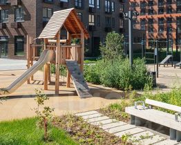 Проект задуман небольшим и уютным - в нём будет всего 4 корпуса с переменной высотой: 28, 33 и 38 этажей с подземным паркингом. Не территории мы построим детский сад на 150 малышей и школу для 350 учеников. А во дворе - зелёный парк с детскими и спортивными площадками и зонами для отдыха. На первых этажах откроются магазины, кафе и другие сервисы.