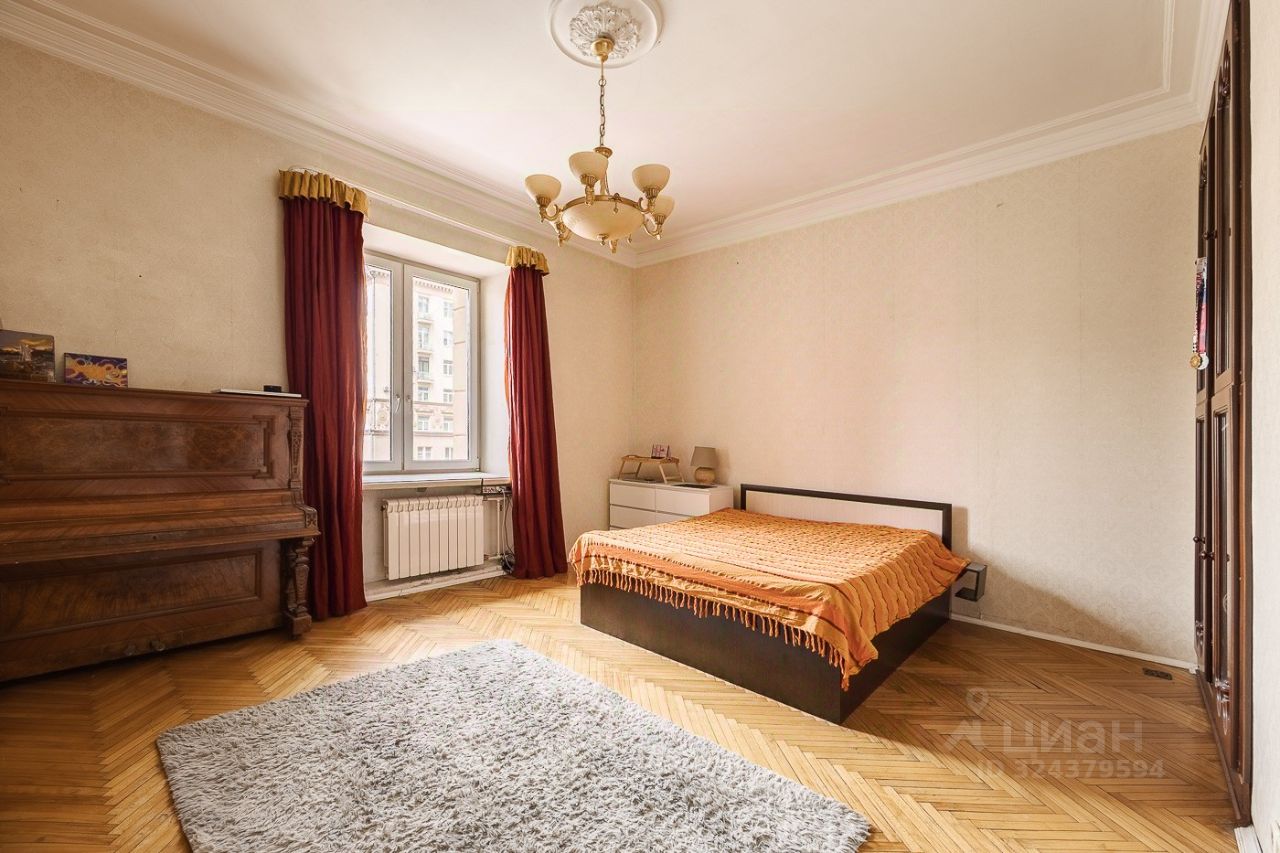 Продается просторная трехкомнатная квартира в сталинском доме на третьем этаже, площадью 97.6 м2 в пяти минутах ходьбы от Патриарших прудов. Квартира принадлежала исторической личности И.В. Хрусталёву.